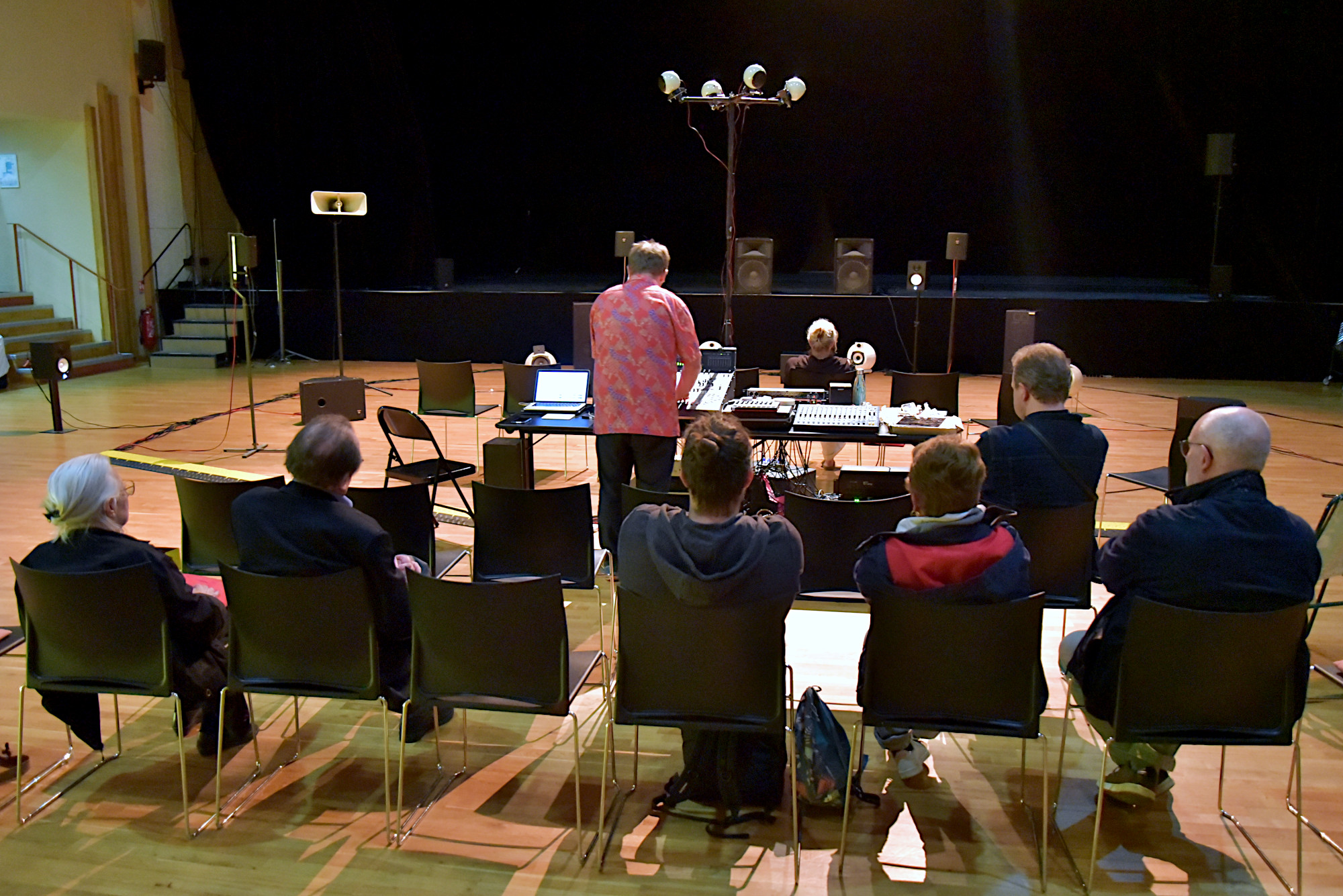- Workshop à destination des musicien·nes professionnel·les (ou en cours de professionnalisation), qui souhaitent utiliser l’acousmonium pour leur production personnelle (compositions, mixage, oeuvres mixtes etc.)
