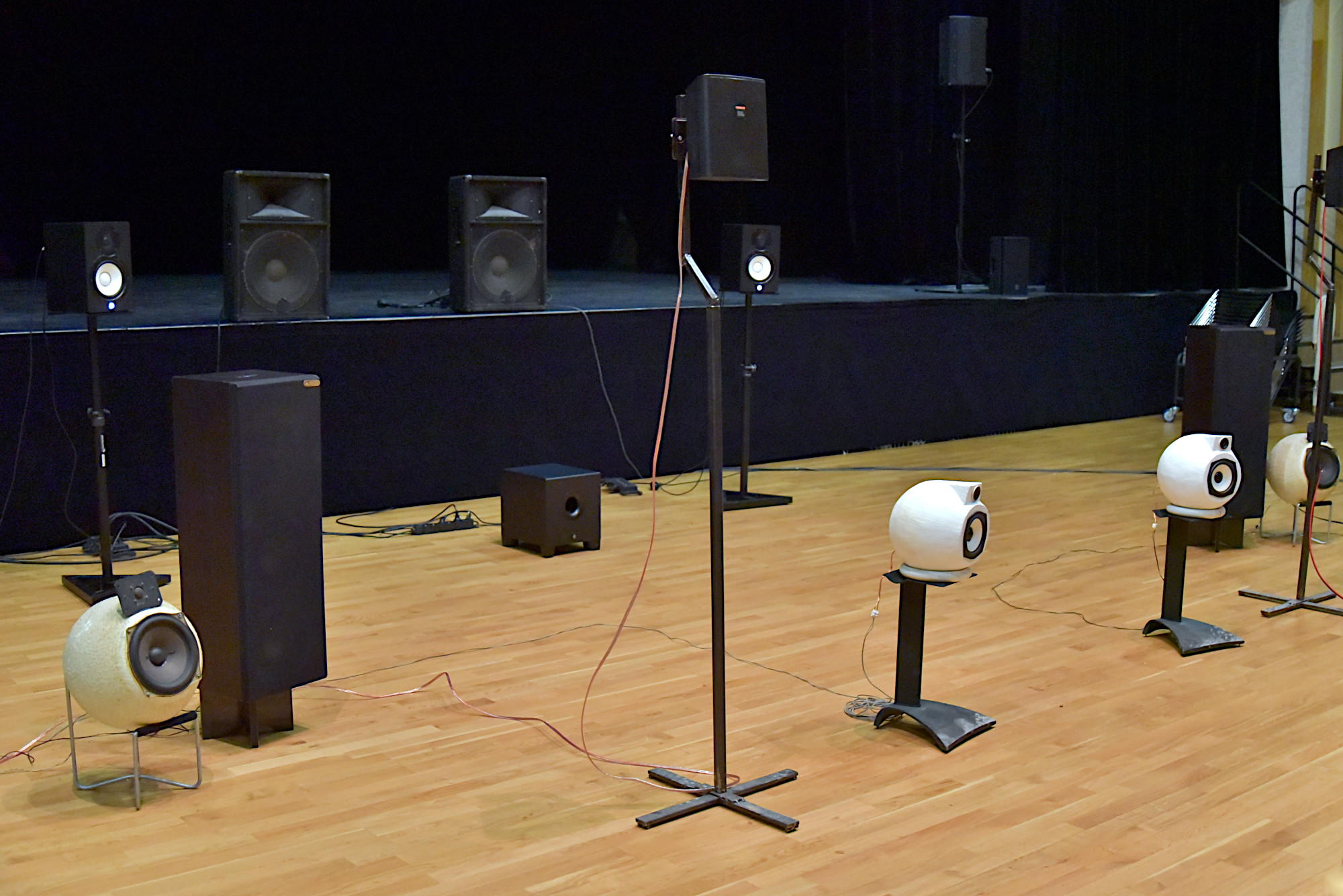 Composé d’environ 50 haut-parleurs, mélangeant enceintes de sonorisation, Hi-Fi, monitoring, fait maison, l’acousmonium sera installé sur une surface d’environ 150 m2 et permettra, dans une scénographie lumineuse, de mieux pénétrer et apprécier les sons d’aujourd’hui.